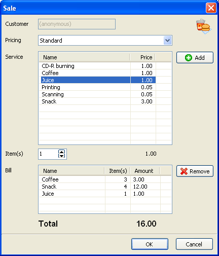 Make a walk-in (guest) and member sales, select multiple items into a bill, add/remove items from a bill. |