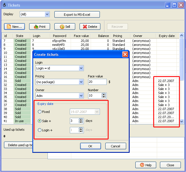 You can now set more flexible ticket expiry date when you create tickets. Tickets expiry date can now be dependent on a ticket sale date or a ticket first login date. The actual expiry date is assigned when the corresponding action (sale, login) occurs. |