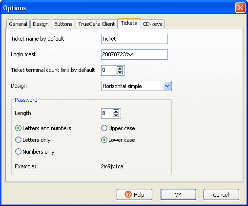 Use a ticket login mask if you want to add preffix / postfix to a ticket login. For example you can add some date information to group your tickets by their creation date. Ticket login mask is used for "login = random" ticket generator option only. Ticket login mask must contain %s (200801%s for the example above, which means Jan 2008). |