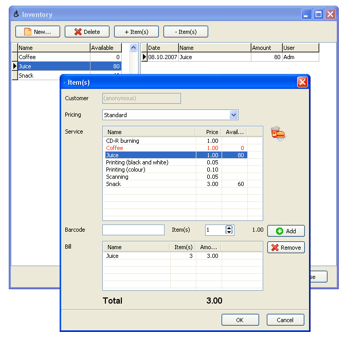 Use a barcode scanner on your point-of-sale (POS) computer. Monitor the sale history. Control available items amount on your POS. |