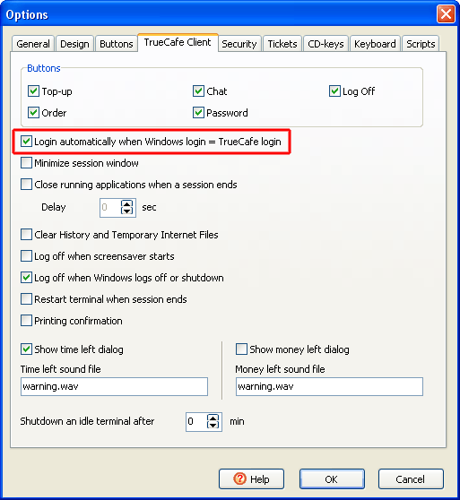 Start TrueCafe customer session and unlock a terminal screen automatically when Windows user login is found in your TrueCafe customer list. This is helpful when all your customers have personal Windows user names so they don't need to login to TrueCafe when then login to Windows. |