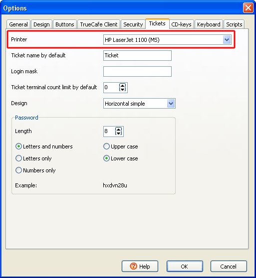 Select a ticket printer if it's not your Windows default one. For example, you can select your POS printer as your ticket printer. |