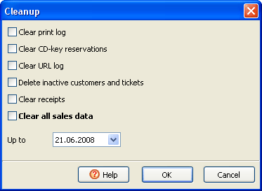Clear all sales data irrevocably deletes unused customers, sales, customer sessions, top-ups and shifts. Use this option in order to optimize your database.