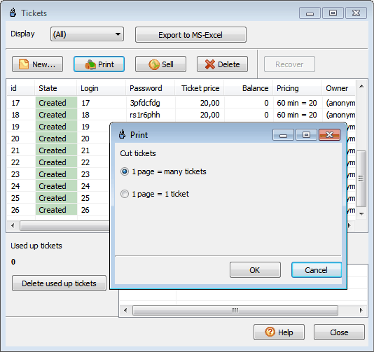 Print a number of tickets on the same page (e.g. A4) or cut every ticket (1 page = 1 ticket). The latter approach is useful when you print tickets on the receipt printer. Available in the latest beta version |