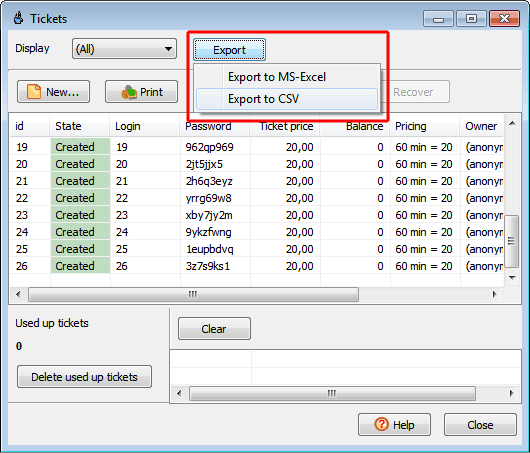 Export most of the lists (tickets, sales, etc.) to CSV-files, which you can open in Open Office and other programs. Available in the latest beta version |