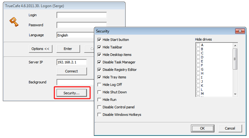 Hide Windows Start button, desktop items, taskbar, etc. - now from the TrueCafe Client side. Available in the latest beta version |