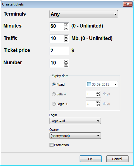 Specify traffic limit in Mbytes when you create pre-paid tickets. When the limit is over, the customer session is stopped even if some time is still left on the customer's balance. |
