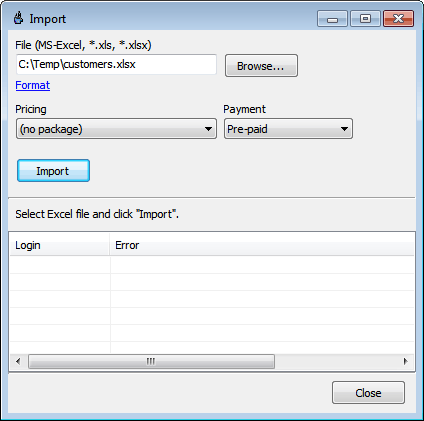 If you use to have any billing system before, you can import the customer list from MS-Excel file in the appropriate format: