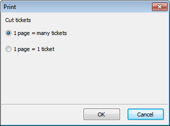Specify whether you want to print a number of tickets on the same page (e.g. A4) or cut every ticket (1 page = 1 ticket). The latter approach is useful when you print tickets on the receipt printer.